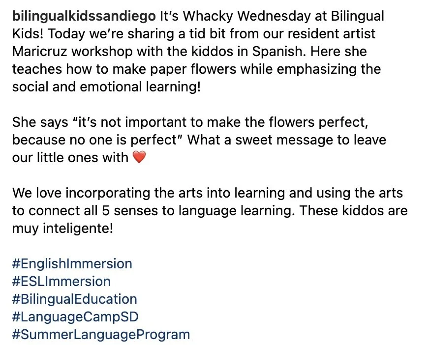 Post linked to this image - This was a caption copy written for a post to promote this immersions school summer camp program