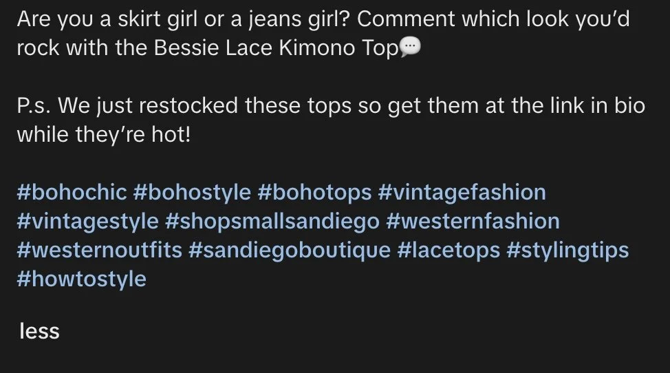 Post linked to this image - This was caption copy written for a styling video for this fashion boutique to promote a new item.