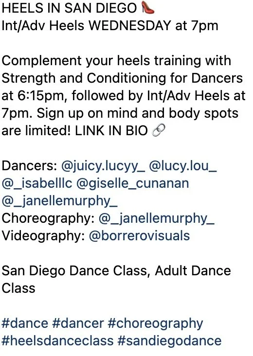 Post linked to this image - This was a caption copy written for a post to promote the upcoming dance show for this dance company.