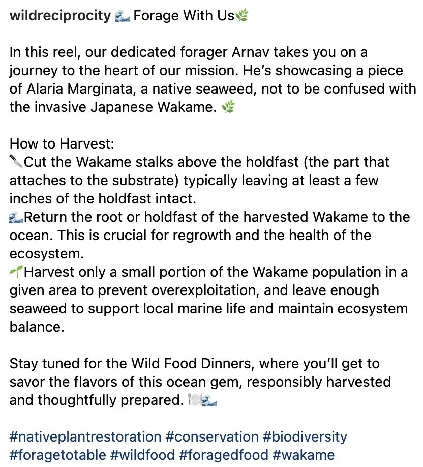Post linked to this image - This was caption copy written for a foraging video for the Wild Harvest and Restoration Fund.